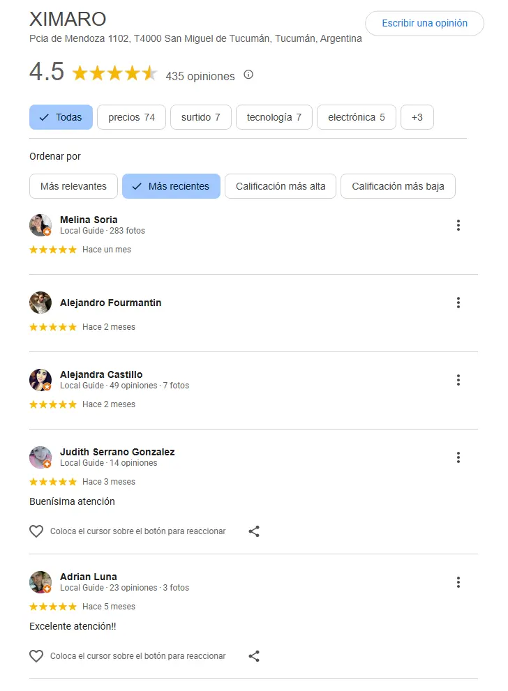 Puedes ver todos los comentarios de nuestros clientes